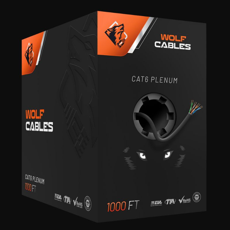 It’s a Cat6 Ethernet cable with pure copper conductors and a plenum-rated jacket, designed for safe installation in air-handling spaces.